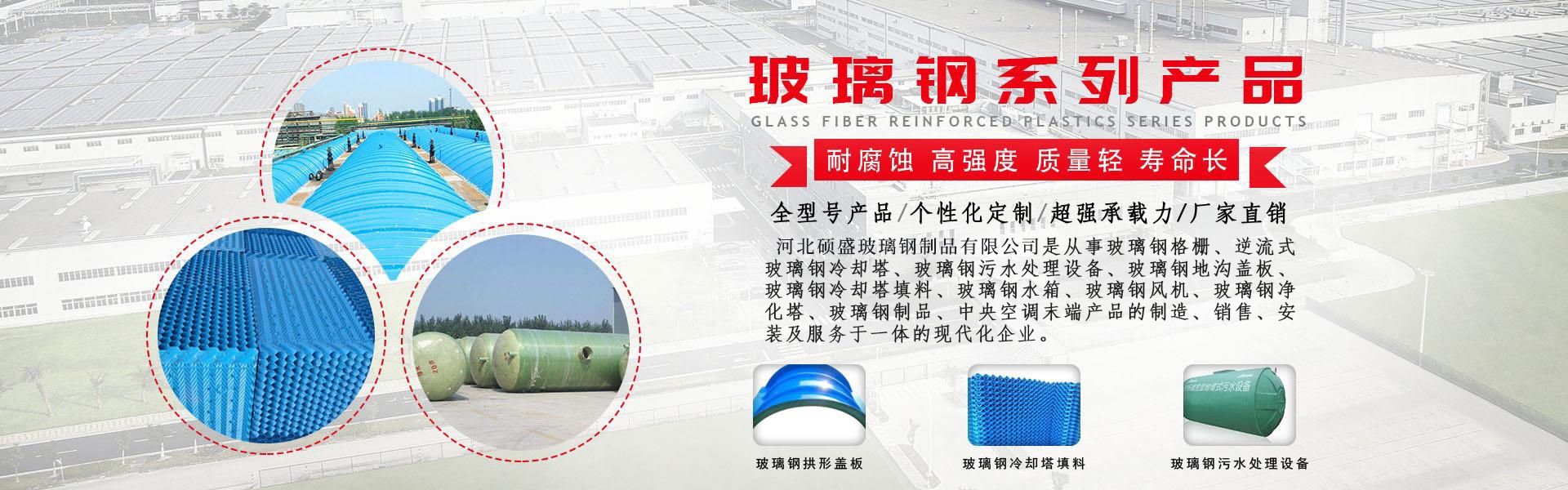 河北碩盛玻璃鋼制品有限公司,是從事洗車房玻璃鋼格柵蓋板、玻璃鋼拱形蓋板、玻璃鋼格柵蓋板、玻璃鋼地溝蓋板、玻璃鋼冷卻塔填料、橫流式玻璃鋼冷卻塔、逆流式玻璃鋼冷卻塔、玻璃鋼電纜橋架、玻璃鋼污水處理設(shè)備、污水池蓋板、玻璃鋼格柵、玻璃鋼冷卻塔、玻璃鋼水箱、玻璃鋼風(fēng)機(jī)、玻璃鋼凈化塔、玻璃鋼制品、中央空調(diào)末端產(chǎn)品的制造、銷售、安裝及服務(wù)于一體的現(xiàn)代化企業(yè)。我公司已成為集工程預(yù)算、技術(shù)咨詢、產(chǎn)品設(shè)計(jì)、制造、安裝調(diào)試、售后服務(wù)于一體的公司,形成了一整套規(guī)范化、科學(xué)化、系統(tǒng)化管理體系。產(chǎn)品遍布天津、遼寧、山西、江蘇、內(nèi)蒙、湖北、黑龍江、貴州等地區(qū)。